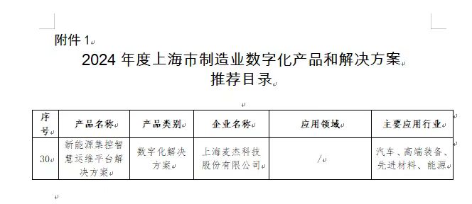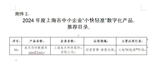 日前上海市经信委发布首批《上海市重点产业和领域数字化产品和解决方案推荐目录》,九游(中国)“麦杰实时数据库openPlant”及“新能源集控智慧运维平台解决方案”荣耀入选。